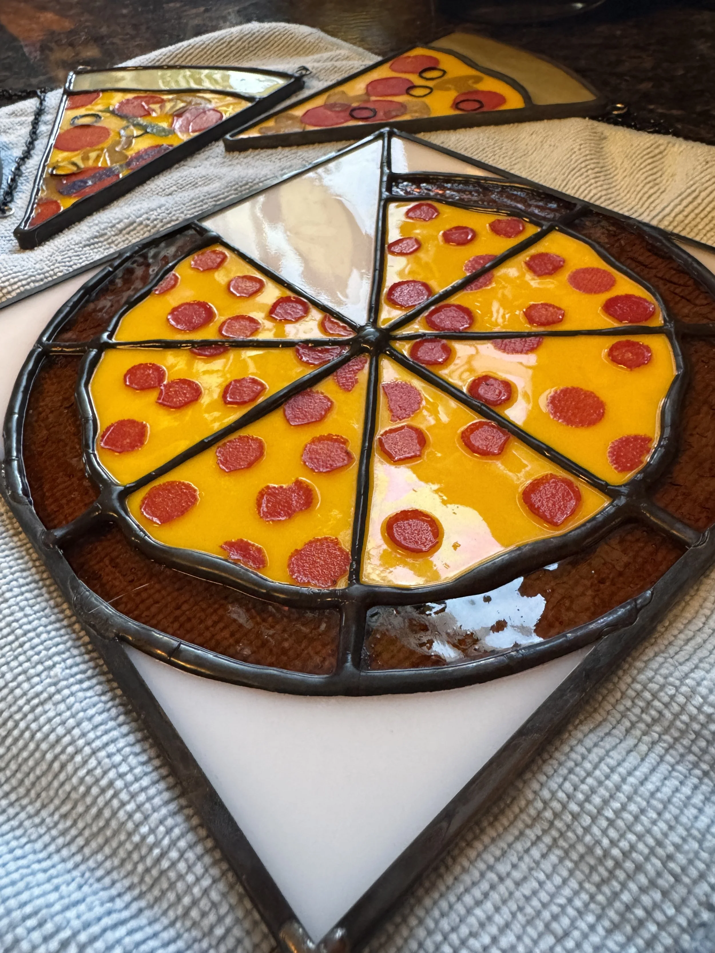 Powder print toppings kiln fused and Tiffany-style construction 🫰